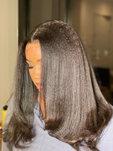 Our Gorgeous kinky straight wig, has been carefully formulated to replicate the "natural blow out" look. We have endlessly studied this texture and have been able to mimic a very natural pattern. This wig is composed of a 13"x4" HD lace frontal or a 6x6 closure and bundles.